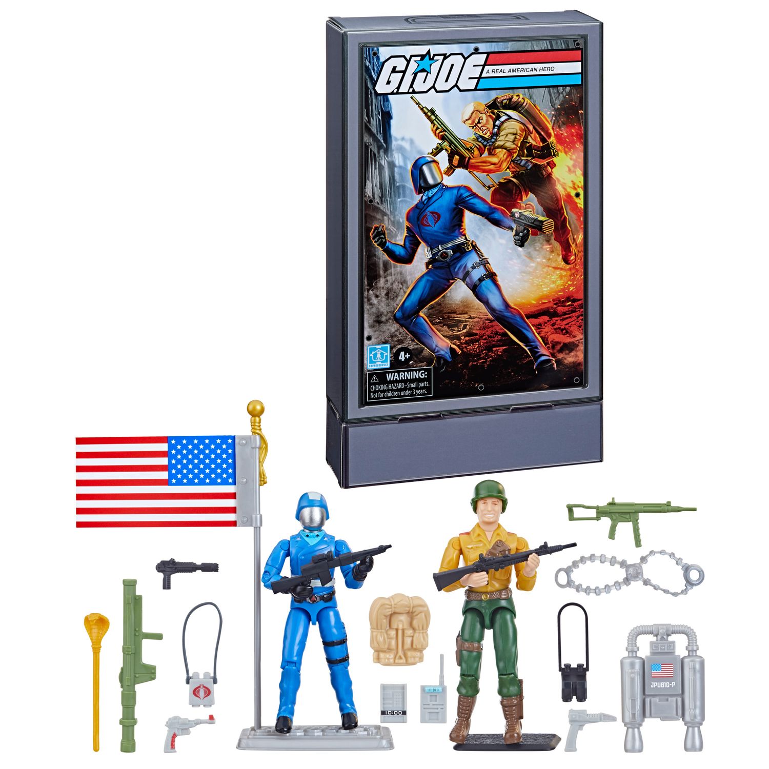 Hasbro presenta, dentro de la colección Retro Collection, este pack de 2 figuras de Duke VS Cobra Commander. Las figuras miden 9,5 cm y están inspiradas por el 40ª aniversario de la serie «G.I Joe». Cuenta con detalles premium y múltiples puntos de articulación. Cobra Commander incluye 1x arma y Duke 1x arma y 1x casco. Vienen en su propio blíster y con un diseño original.