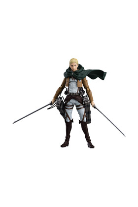 Good Smile Company, dentro de su linea de figuras Figma, presenta la figura de Erwin Smith de la popular serie de anime "Attack on Titan". Se trata de una figura de 15 cm de alto que viene con 3 caras intercambiablews que incluyen una cara