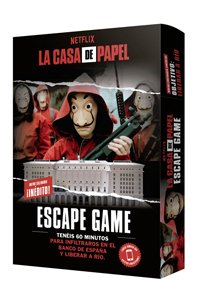 ¡SUMERGÍOS EN EL UNIVERSO DE LA EXITOSA SERIE DE NETFLIX! Después de vuestro sonado atraco a la Fábrica Nacional de Moneda y Timbre, ¡habéis regresado para repetir la hazaña! Vuestra misión es doble: robar las reservas de oro del Banco de España y liberar a Río. El Profesor será nuevamente vuestro guía: ¡seguid sus instrucciones y saldréis ricos y libres! Un Escape Game palpitante, repleto de referencias a la exitosa serie La Casa de Papel, durante el cual iréis avanzando por el Banco de España al hilo de varias etapas que supondrán una inmersión total. CONTENIDO 1 guía de misión 1 plano del Bando de España 16 cartas de etapa 31 cartas de pistas 9 cartas de personaje